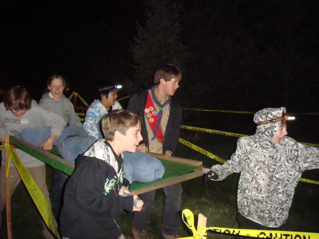 Yet another stretcher run, but this time we didn't have to build it ourselves and the victim, errum, patient was a dummy. We did well and were rewarded with hot dogs.